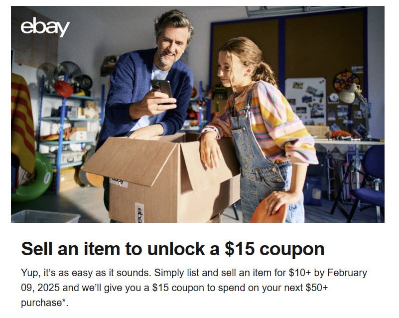 eBay has taken it a step further, first in Q4 and now again in Q1, hoping to secure an increase in those critical "enthusiast buyers" by specifically incentivizing new sellers to become buyers too, offering a $15 coupon to spend on a purchase of $50 or more, if they sell an item for $10+.