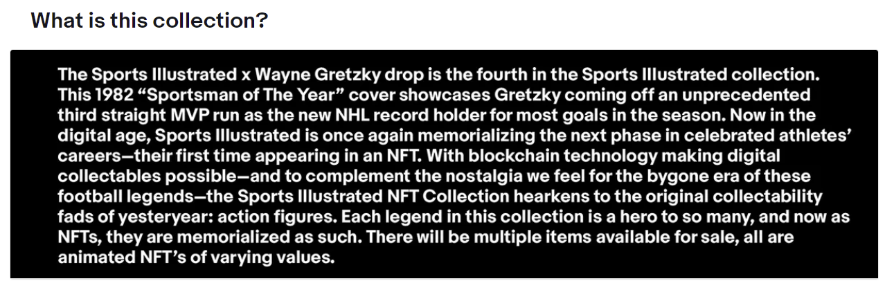 eBay's first-ever "Genesis" NFT Collection will feature 3D and animated interpretations of the iconic athletes featured on Sports Illustrated covers over the years, the first of which – available beginning today at eBay.com/oneofgretzkynft – features record-breaking Canadian hockey legend Wayne Gretzky.