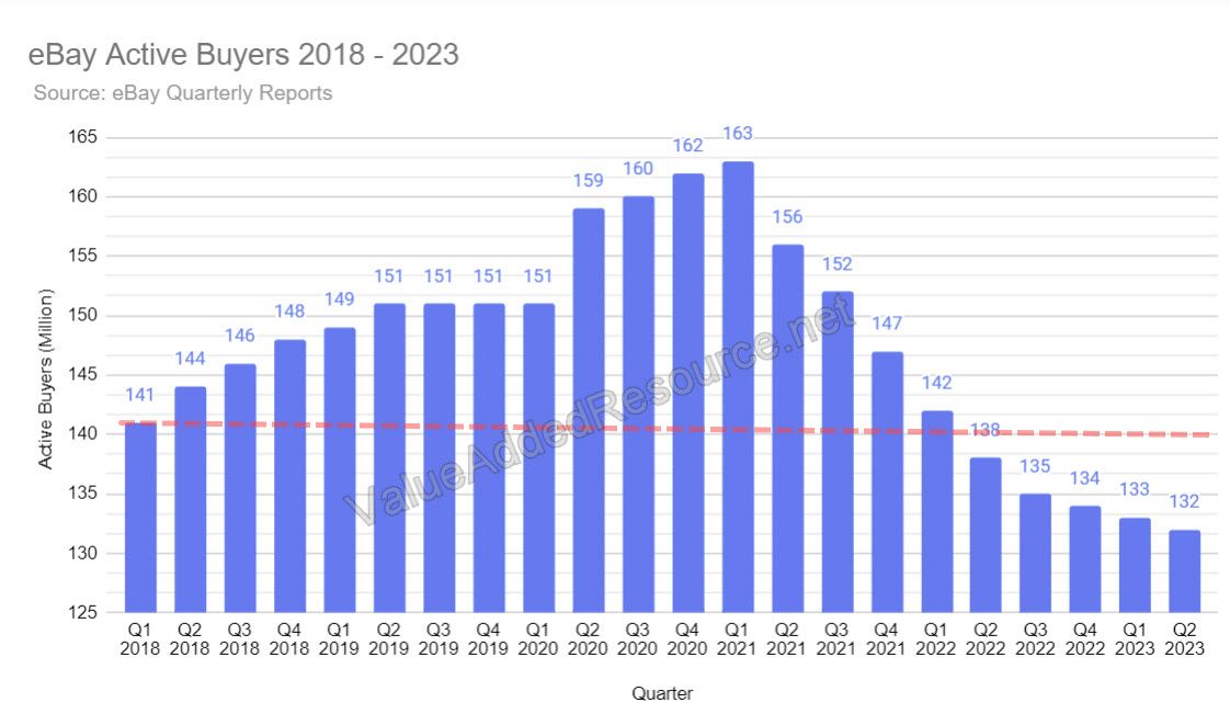 That's right - not only has eBay lost any buyer growth from the pandemic boom, they've also squandered any gains that had been made for 2+ years prior.