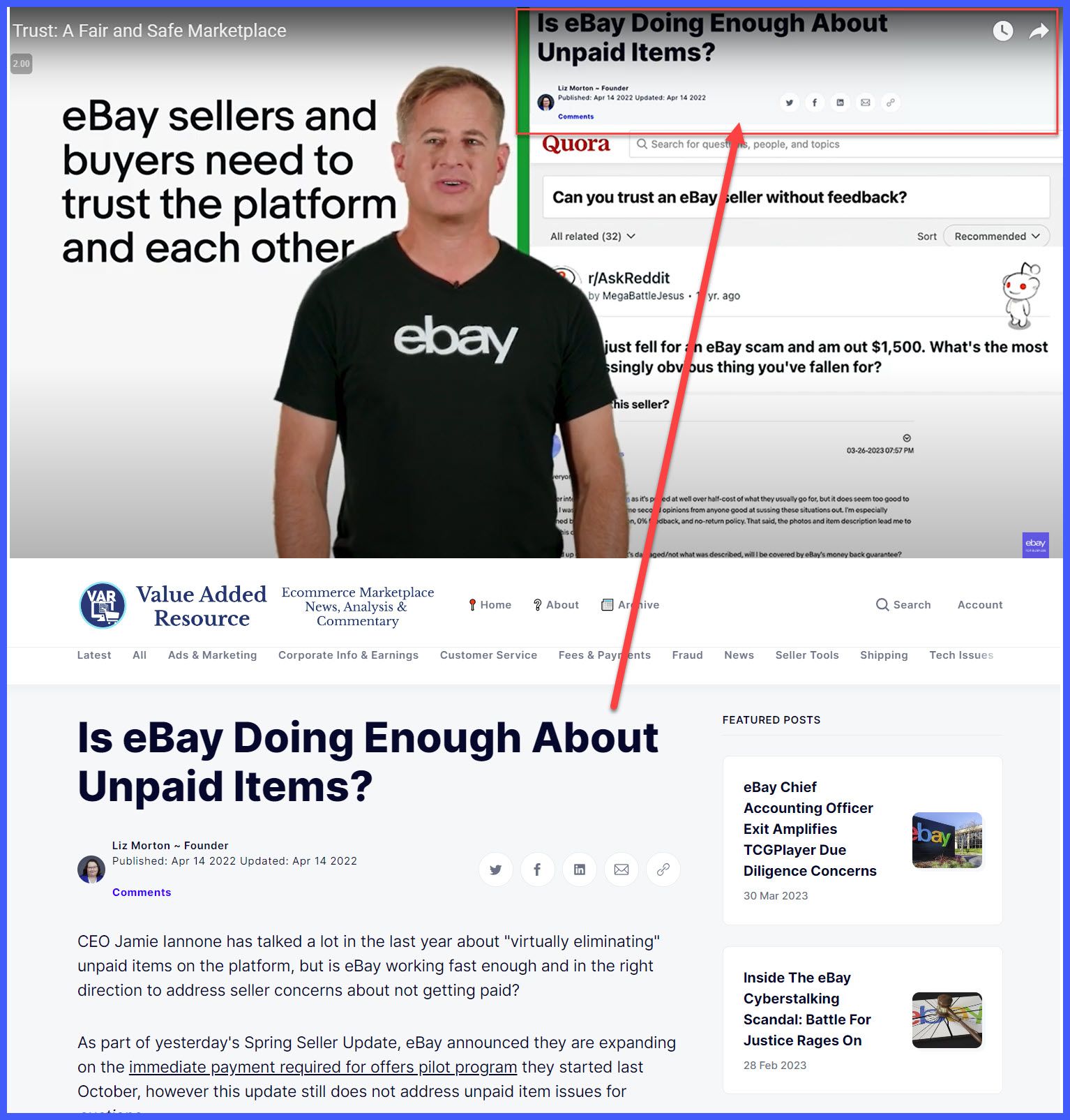Strangely, they even cut off the header for a post from the eBay community - why would they not want to point buyers and sellers to their own forum?