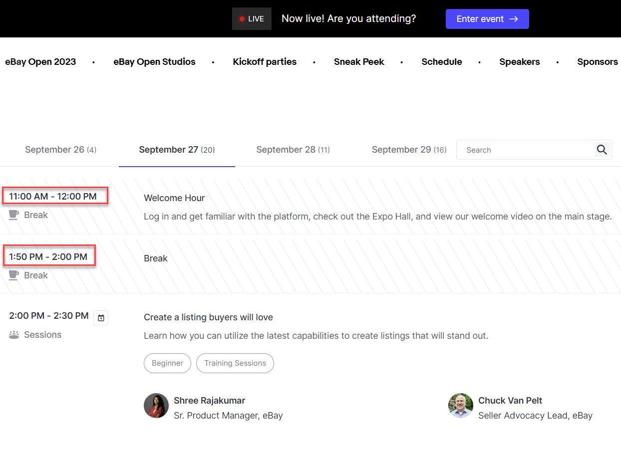 Highlights from the agenda below show eBay is leaning heavily on seller hosted segments this year with many overlapping sessions - but don't worry if you can't make them, like last year, most of the sessions will likely be pre-recorded (not live) and will be posted to eBay's YouTube channel to watch after the fact.