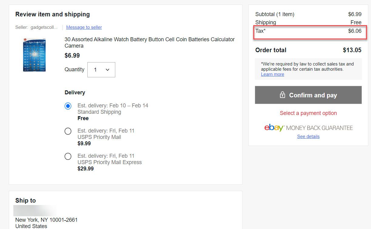 Back in December 2020, eBay users reported being charged exorbitant sales tax rates when purchasing batteries on the platform and the issue appears to have reared its head again.