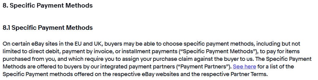 It's a long section, so I won't copy and paste all the verbiage here, but it lays out terms and conditions for direct debit, pay by invoice, and installment or Buy Now Pay Later options like the recently introduced partnership with Riverty in Germany.