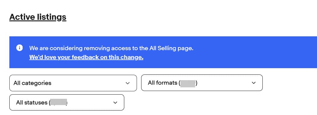 Whatever one's opinion on the All Selling page is, kudos to eBay for proactively notifying sellers of a potential change and seeking feedback - that's a step in a very positive direction.