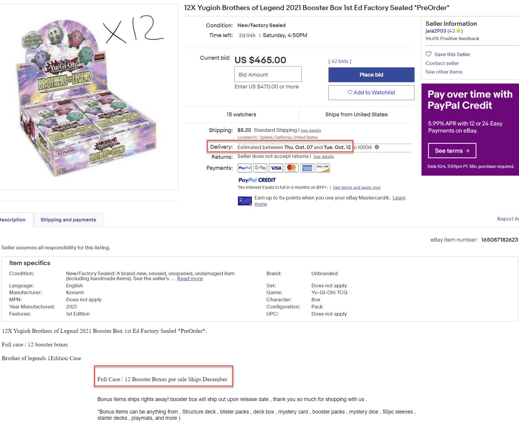 Notice the estimated delivery by October 12th. That would mean if I won this bid, I'd only have until November 11th to file a claim under the Money Back Guarantee.