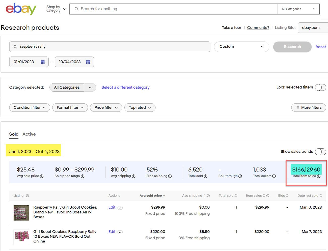 🤔@eBay quietly removes Total Sold (total transactions) and Total Item Sales (total gross sales) metrics from Product Research tool, formerly Terapeak Product Research.
