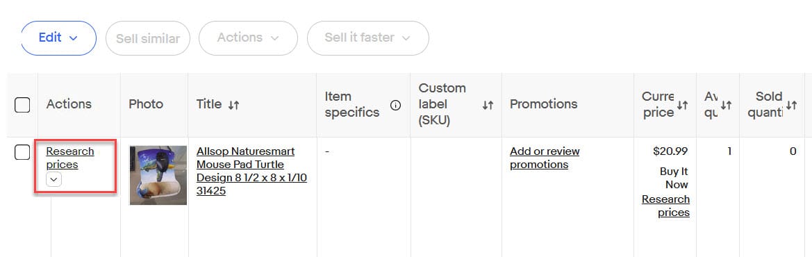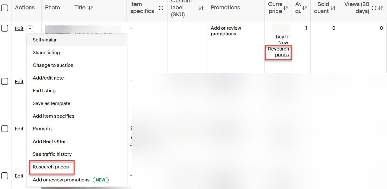 There has also been a bit of confusion around the appearance of a Research Prices option in Seller Hub Active listings, with many sellers noticing the option just recently for the first time while others have had this feature available for several years.