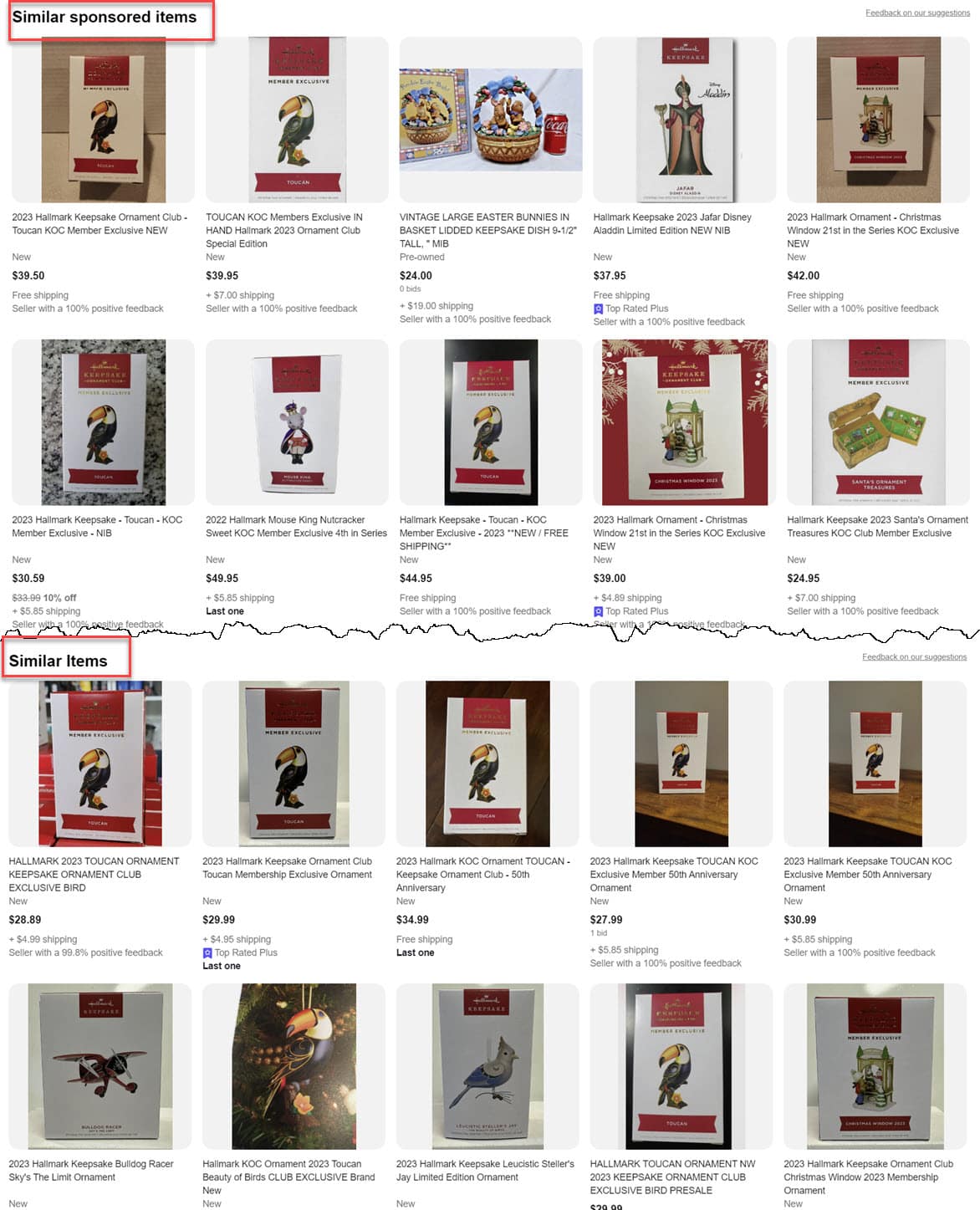 Those ad rows scroll to the right to reveal more ads and you can also click "See all" to go to a separate page which shows both Sponsored ads and Organic "similar" items - some of which are actually the same listing repeated as both sponsored and organic on this page.