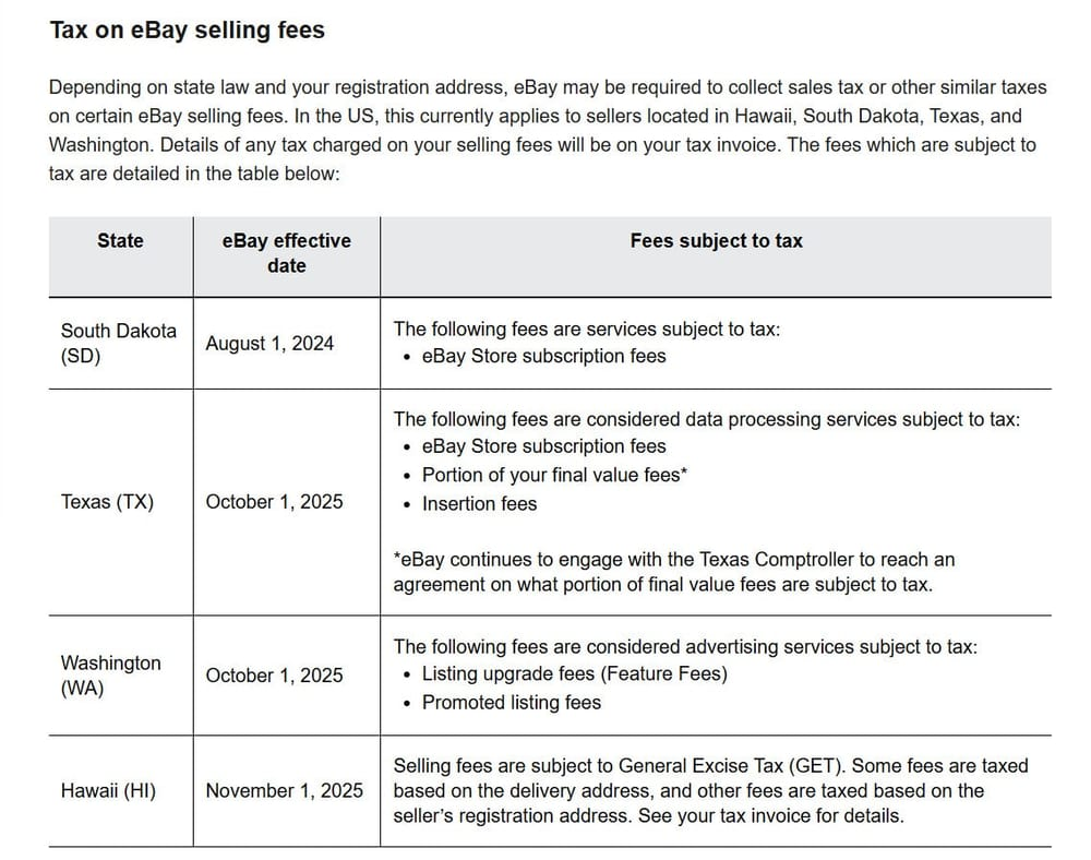 Sellers in Washington will also face increased costs due to recent tax updates in their state which require sales tax to be collected on certain fees marketplaces charge to sellers - including Promoted Listings Fees.