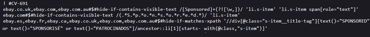 Just for reference - here's what I see when I check the AdBlockPlus ABP filters source.