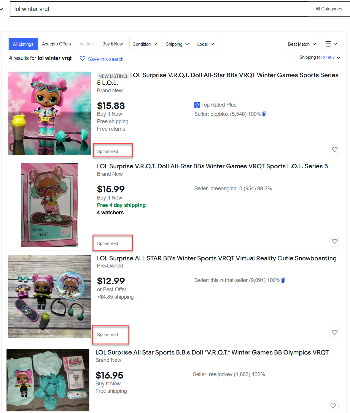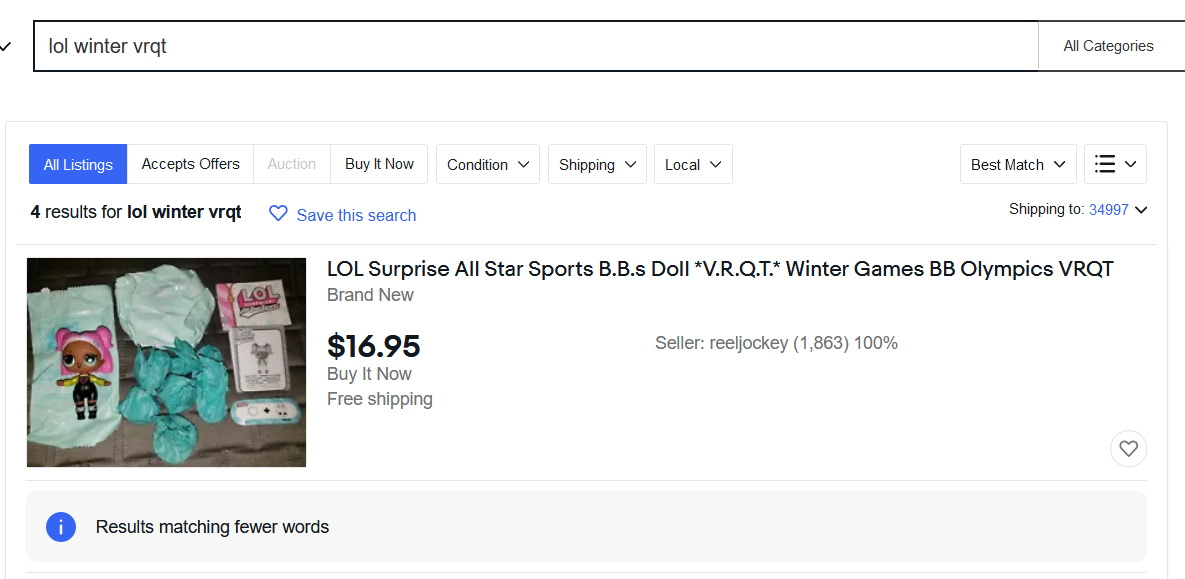 I tried to list a doll this morning, and, while researching comparisons, I noticed that the total items shown didn't match the total search results. It showed there were 6 results, but only 1 was shown.