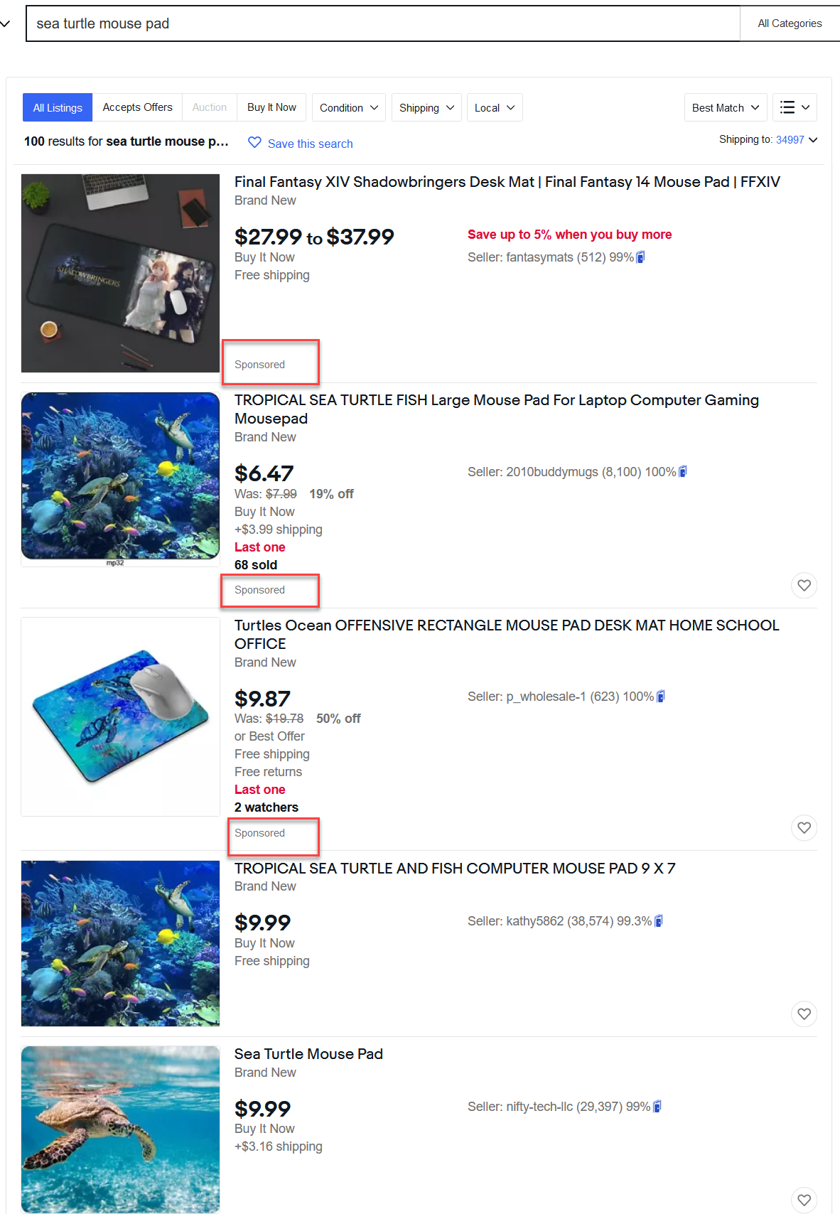 Just to see if the same thing would happen, I tried a search that would be likely to return more results. Searching for "sea turtle mouse pad" with AdBlockPlus on there was not a single sponsored ad shown in 2 pages of search results.