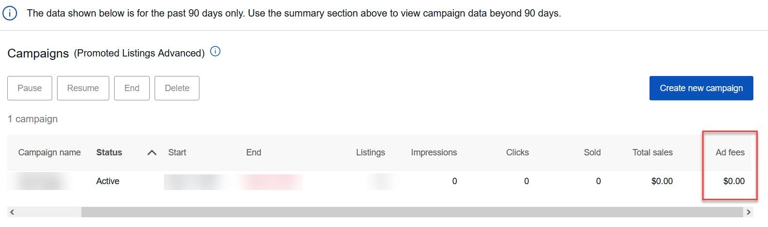 It may just be personal preference, but I'd recommend eBay either adjust the spacing on some of these fields or put the ad fee column further left to make it easier and more obvious to see the total ad fees for a specific campaign.