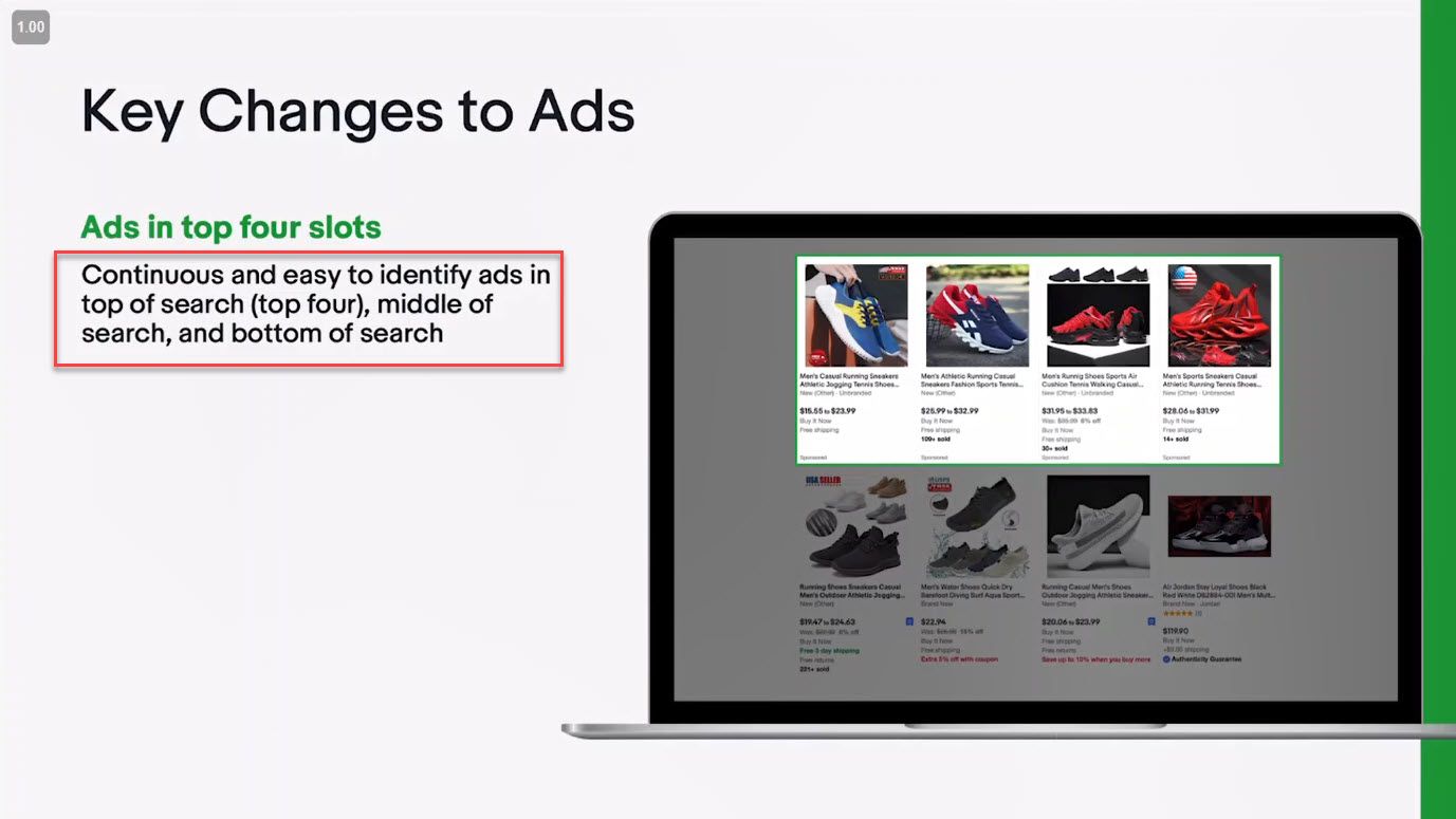 Hot off the presses from eBay Open 2022 - Promoted Listings Advanced will soon not just take over the top 4 spots in search, but also have a dedicated ad area in the middle of search and bottom of search as well.