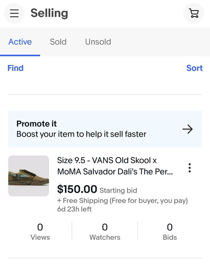 Here's what it looks like with a $150 pair of shoes. After you create the listing, you'll see a banner above it if it is eligible to promote.