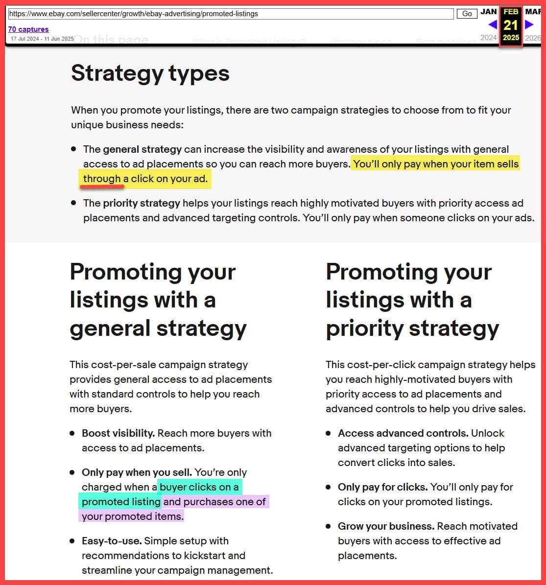 And here's what that same section of that same page said in November 2024 when eBay made a stealth policy update increasing the minimum dynamic rate with no notice to sellers: