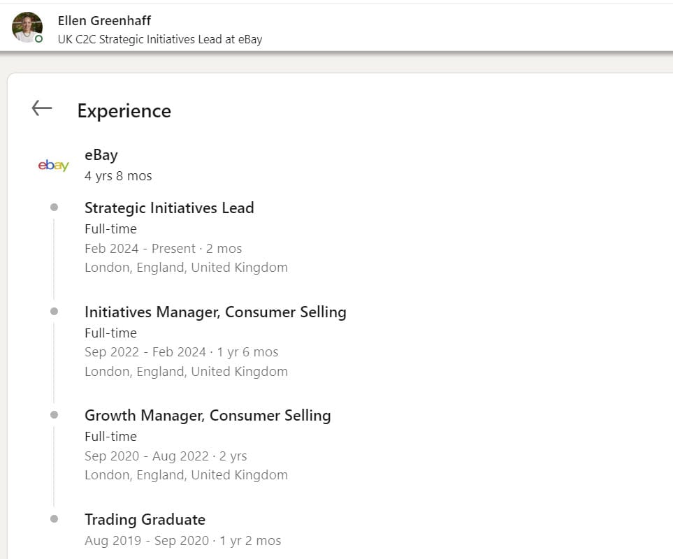 eBay UK also has a new Strategic Initiatives Lead, with Ellen Greenhaff announcing her recent promotion on LinkedIn, saying she is "excited to continue to champion all things C2C."