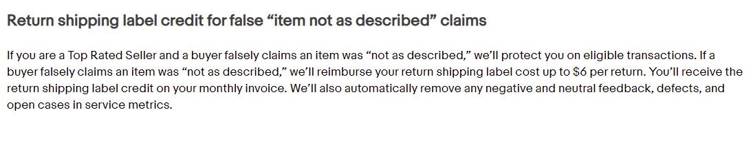 It's not entirely clear to me what he is referring to here. Since the Fall 2019 Seller Update, Top Rated Sellers have had the additional protection of being able to receive a $6 return label credit for false not as described claims - if that's the return shipping credit he's talking about, that is not a new protection and was in place before he returned to eBay.