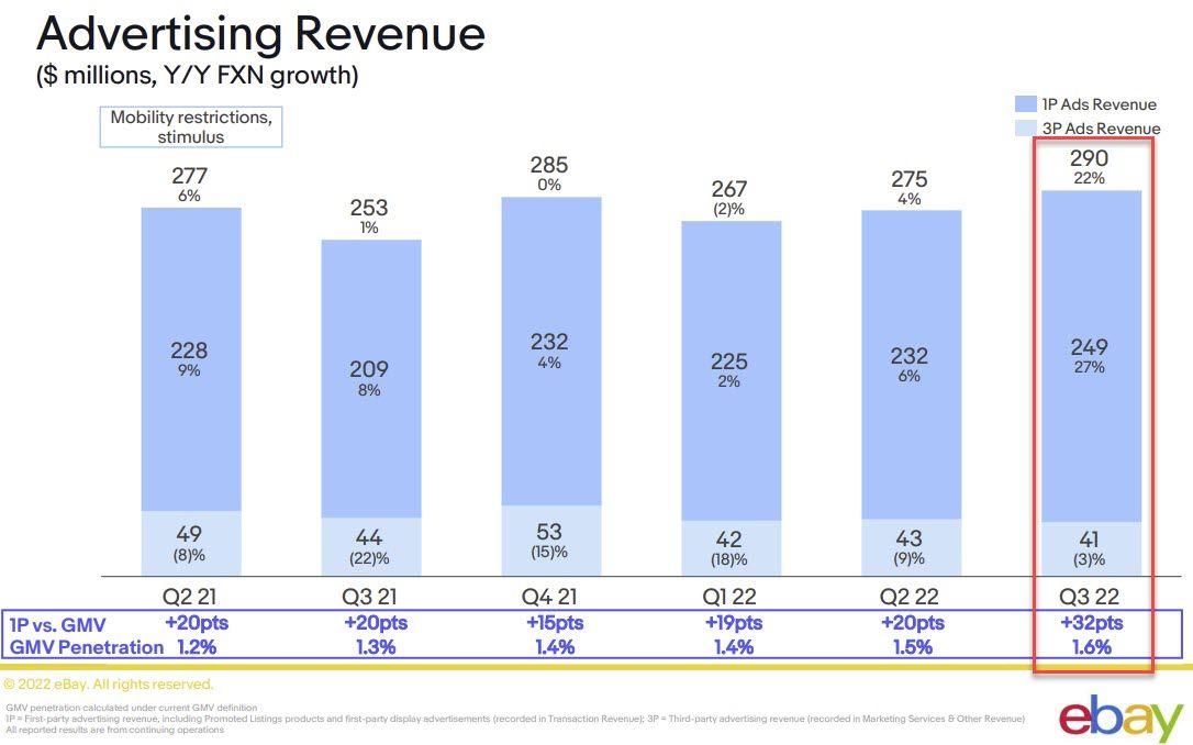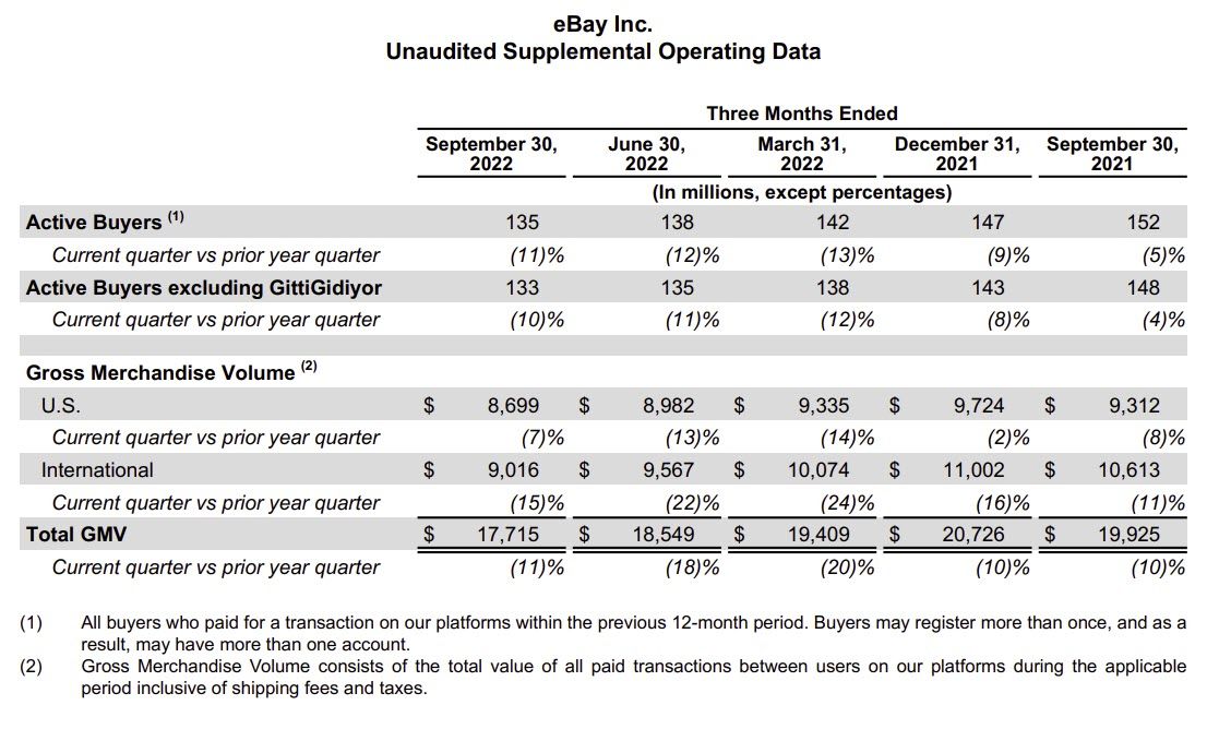 eBay released Q3 2022 results November 2, 2022- full presentation here.