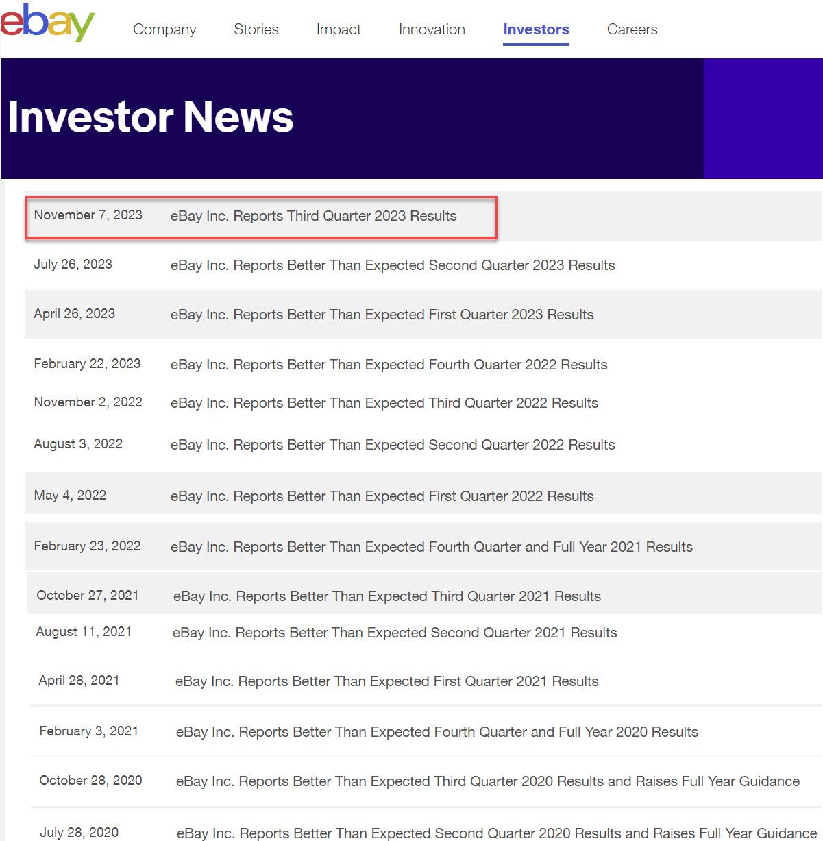 eBay released Q3 2023 earnings on November 7, with disappointing results and weak guidance for Q4 raising concern among investors.