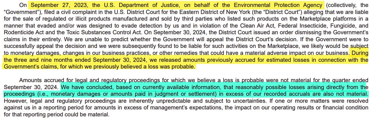 Notably, eBay is reversing $50 Million in "non-recurring legal matters" - likely money that had been set aside for the EPA lawsuit which was dismissed last month on Section 230 grounds.