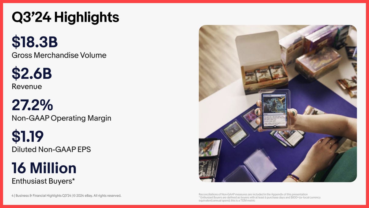 eBay has released Q3 2024 results, with weak Q4 revenue guidance raising questions about fee-free selling and consumer to consumer strategy pivot.