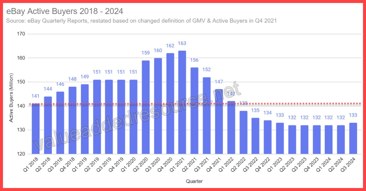 While it's good to see it go up, it's still worth noting this is now the 10th consecutive quarter eBay has had less Active Buyers than Q1 2018.