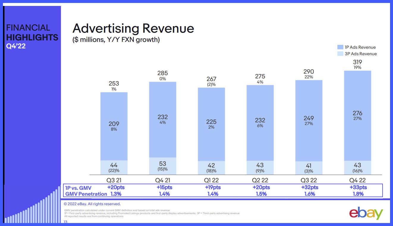 eBay released Q4 2022 results February 22, 2023- full presentation here.