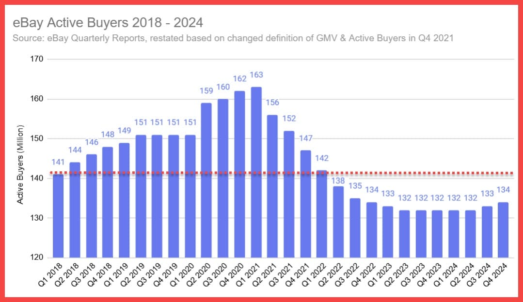 eBay has released Q4 2024 results, with weak Q1 guidance exacerbating concerns about consumer confidence and CEO Jamie Iannone showing no signs of having any idea how to grow GMV and revenue besides shipping rate increases, legacy discounting tactics and stealth ad fee hikes.