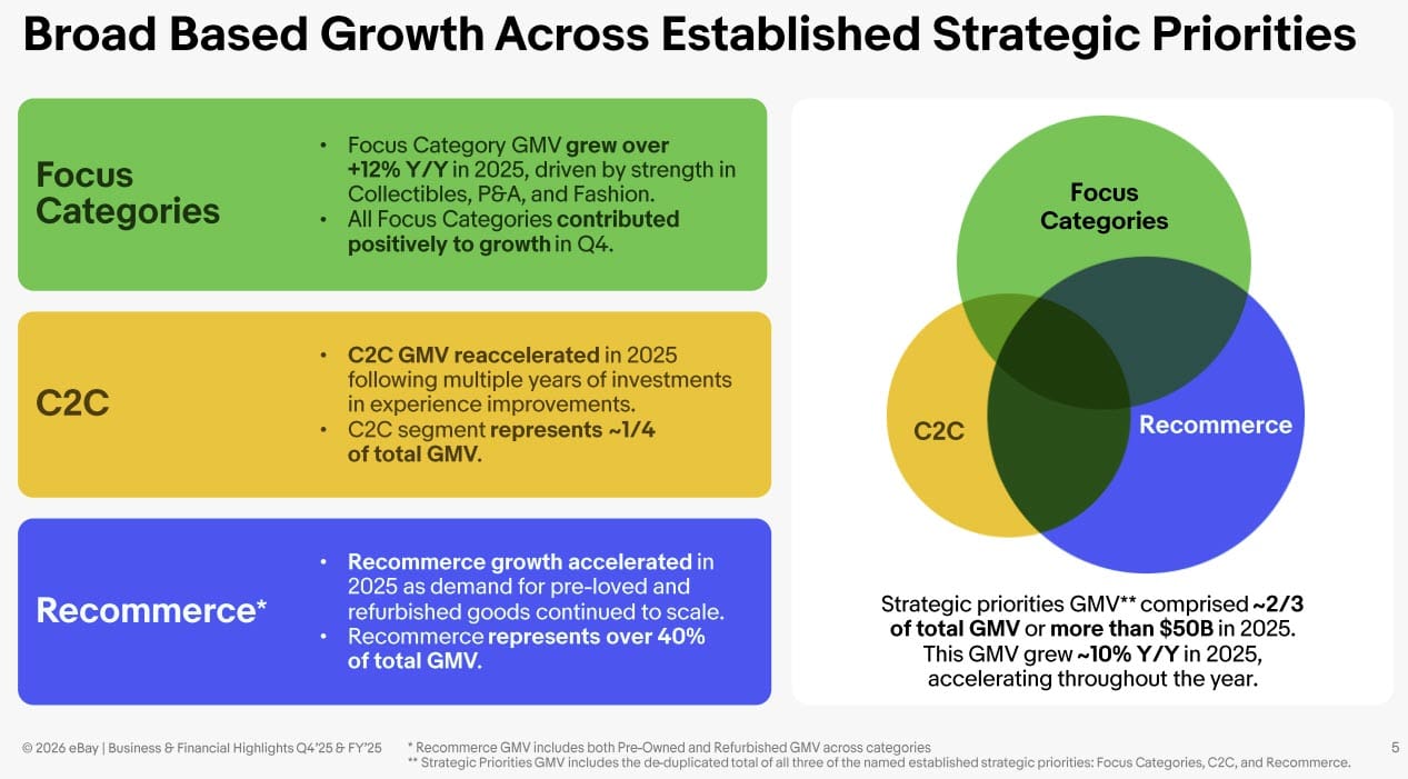 eBay's Q4 and full year 2025 earnings showed impressive GMV growth as company doubles down on consumer to consumer (C2C) strength with acquisition of fashion marketplace Depop from Etsy in ~$1.2B deal.