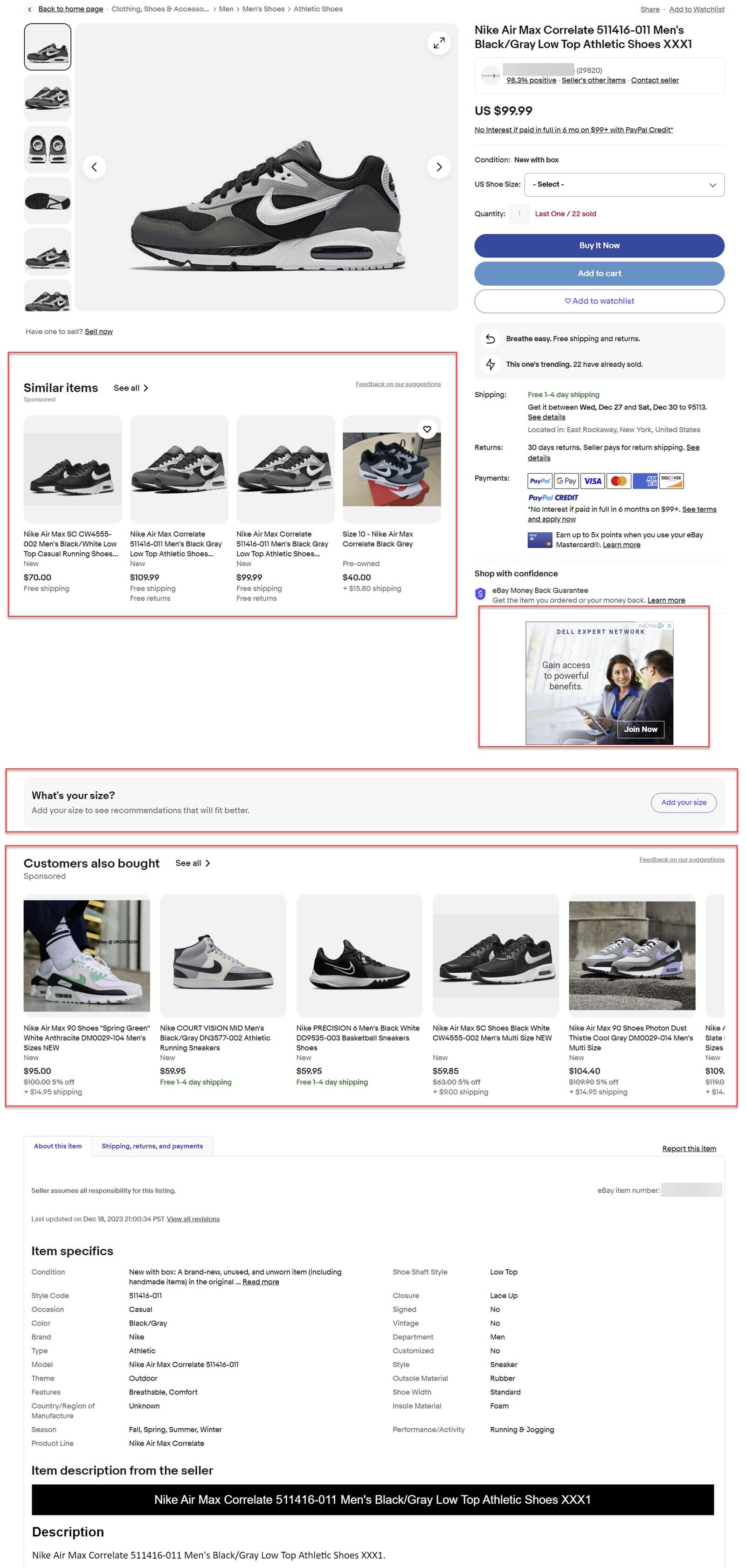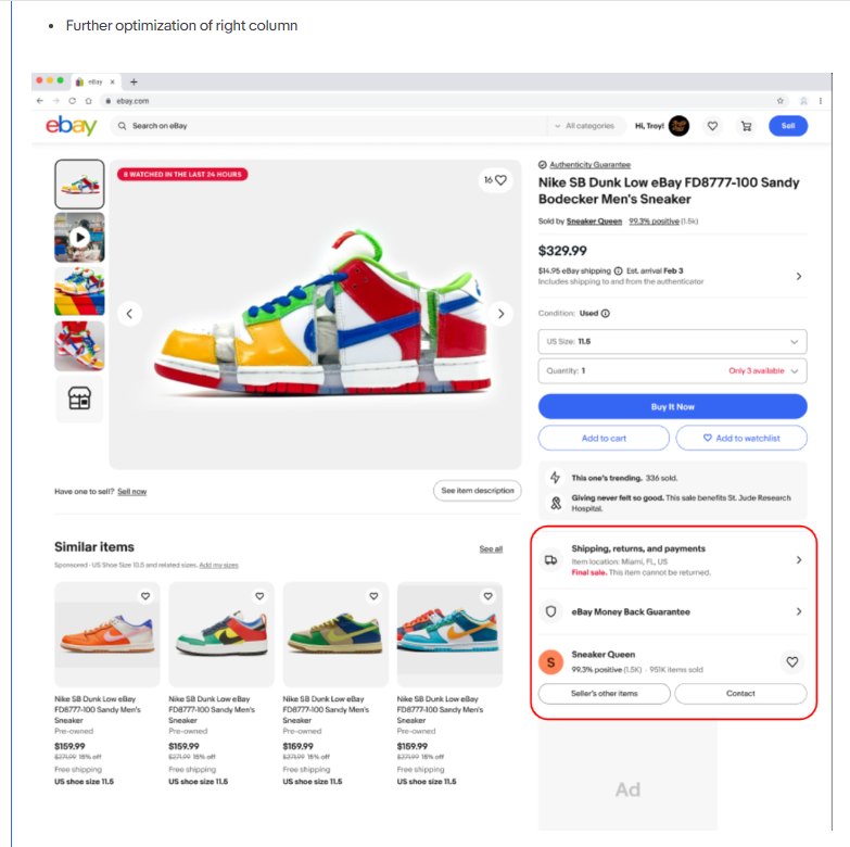 - Bring critical information like Item specifics and seller description higher up on the page before any modules that show other items & ads.