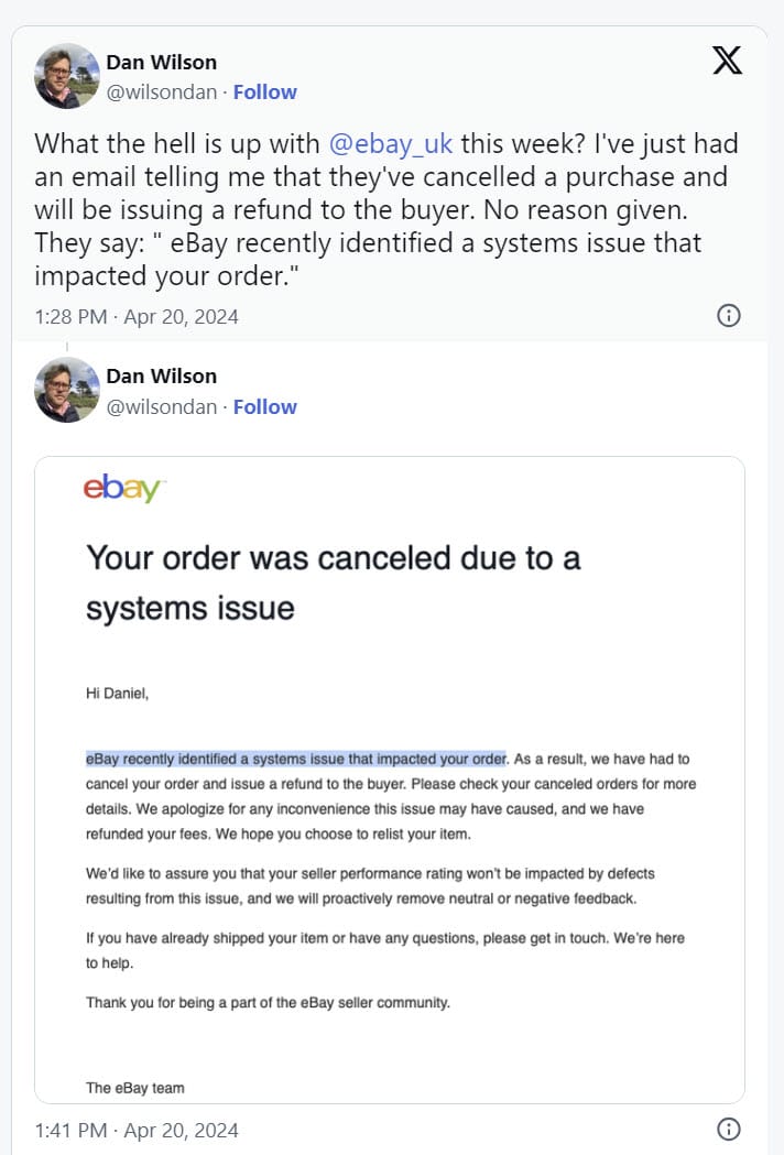 eBay Randomly Cancels Orders Due To "Systems Issue" Without Buyer Or Seller Input