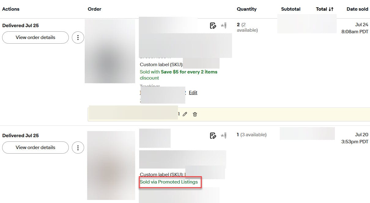 eBay has not responded to request for comment to confirm if the removal of the "sold via Promoted Listings" note on the Orders page is a temporary technical issue or intentional change as of time of publishing.