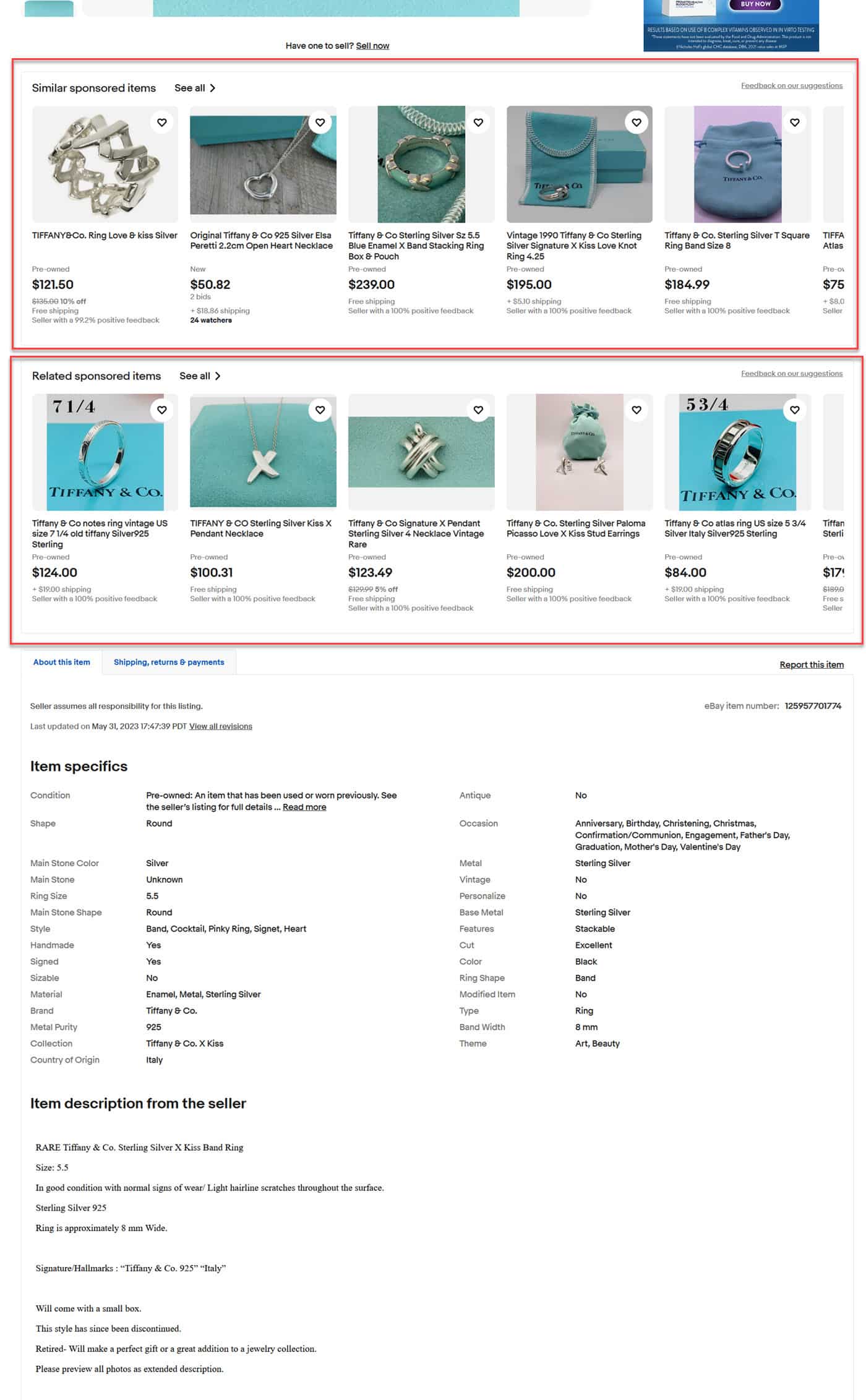 However - eBay is still inserting two rows of sponsored Promoted Listings ads before the Item Specifics and Description, despite the announcement saying they were no longer going to be doing this.