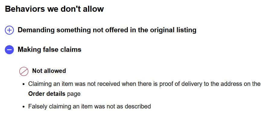 And as that poster points out, eBay's policy pages still list making false INR claims as something which is "not allowed" and should be reported under the Abusive Buyer guidelines.