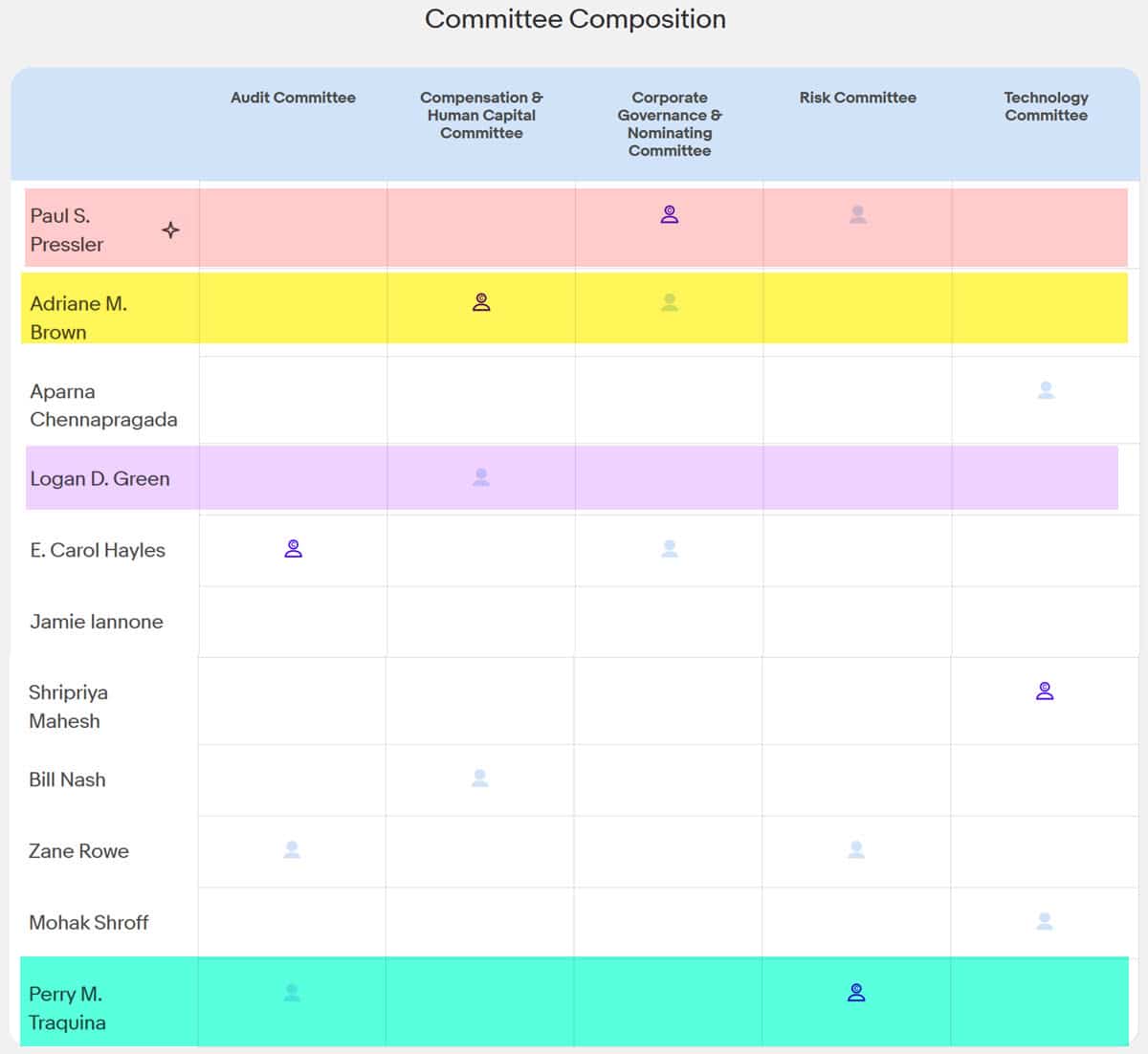 Notably, not only is Pressler still an eBay director, he has since been elevated to Board Chair as well as Chair of the Corporate Governance and Nominating Committee.