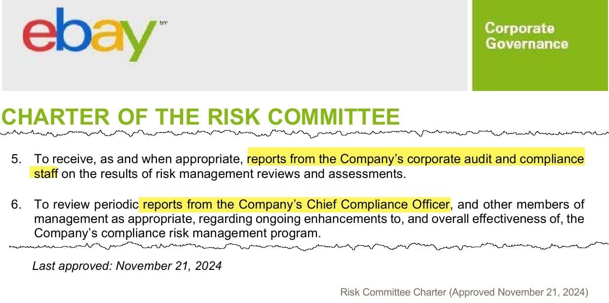 Net result: ethics and governance are linked to identifiable people, while risk and compliance are linked to nobody in particular - despite the SEC’s 2022 request that the company clarify whether it has a Chief Compliance Officer and how that role reports within the organization.