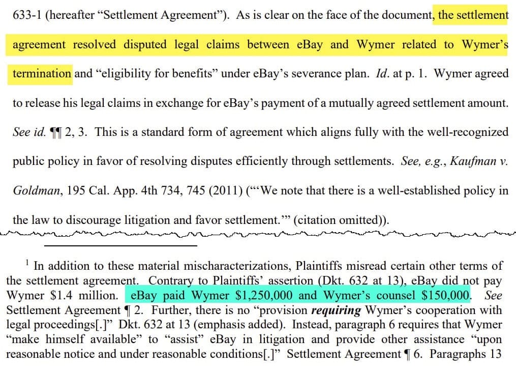 But despite being fired for cause, court documents showed that Wymer still managed to negotiate over $1M in severance in exchange for settling any legal disputes he may have had against eBay related to his termination.