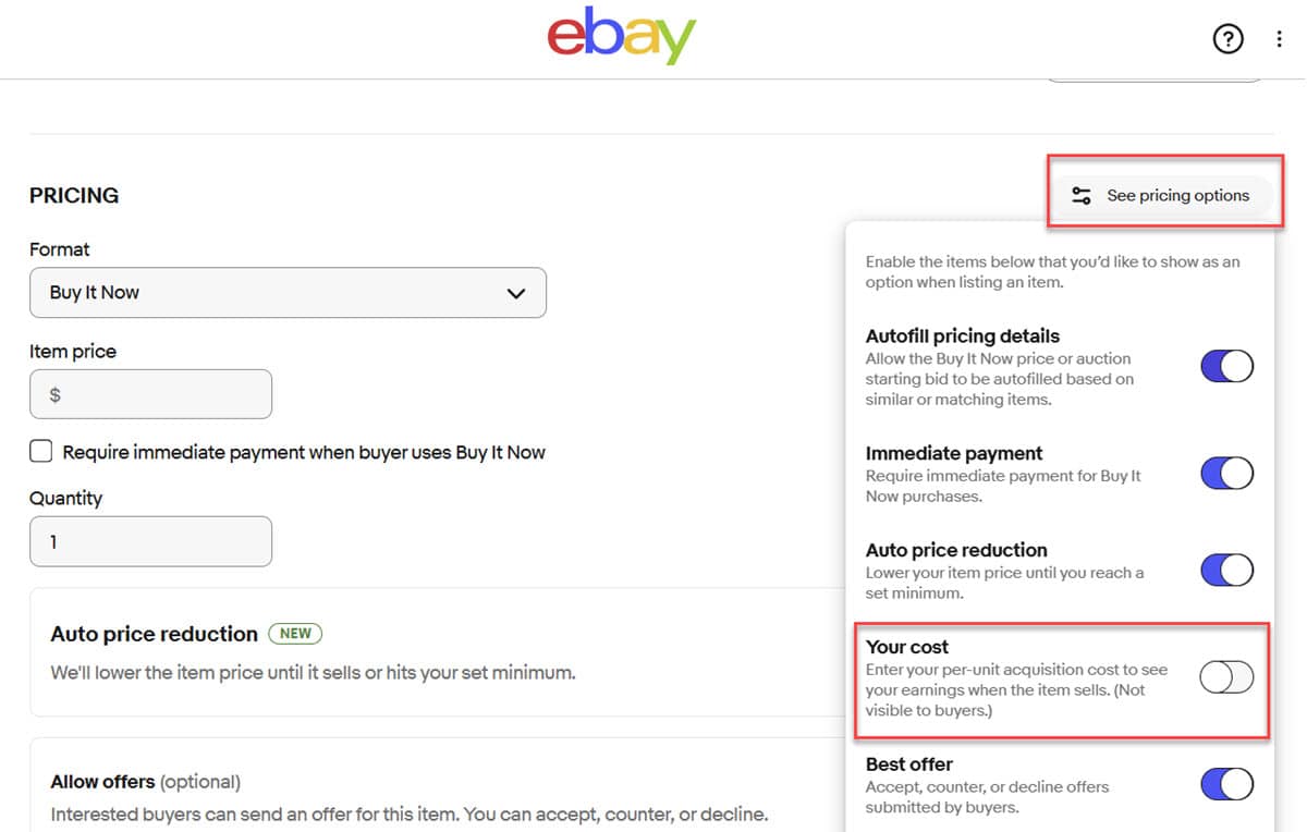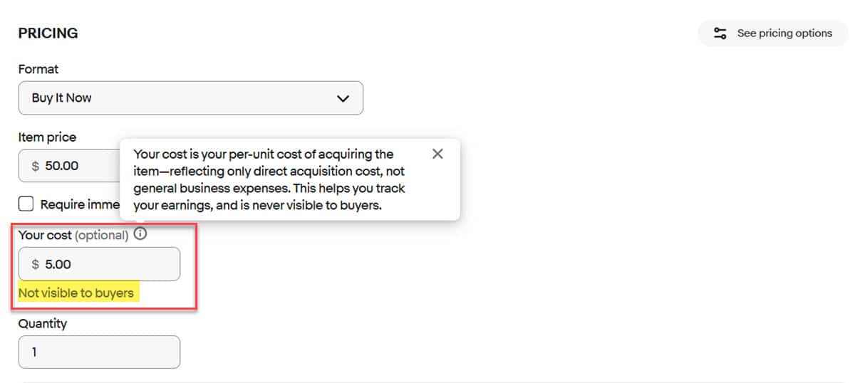 Sellers who buy inventory with resale in mind know that tracking item-level costs is crucial for profitability, which is why eBay is introducing an optional “Your cost” field in the listing flow to input, update, and manage their costs with ease. Once an item has resulted in a sale, sellers can also input and update their cost from the earnings page.