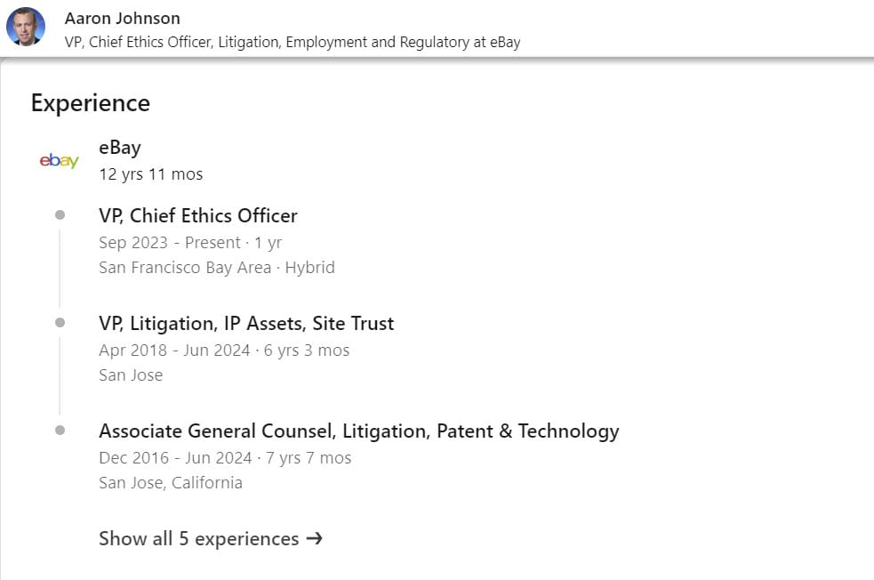Oh Huber's continued presence at the company had raised many questions as eBay continues to be mired in litigation regarding the 2019 cyberstalking and harassment of journalists Ina and David Steiner of EcommerceBytes.