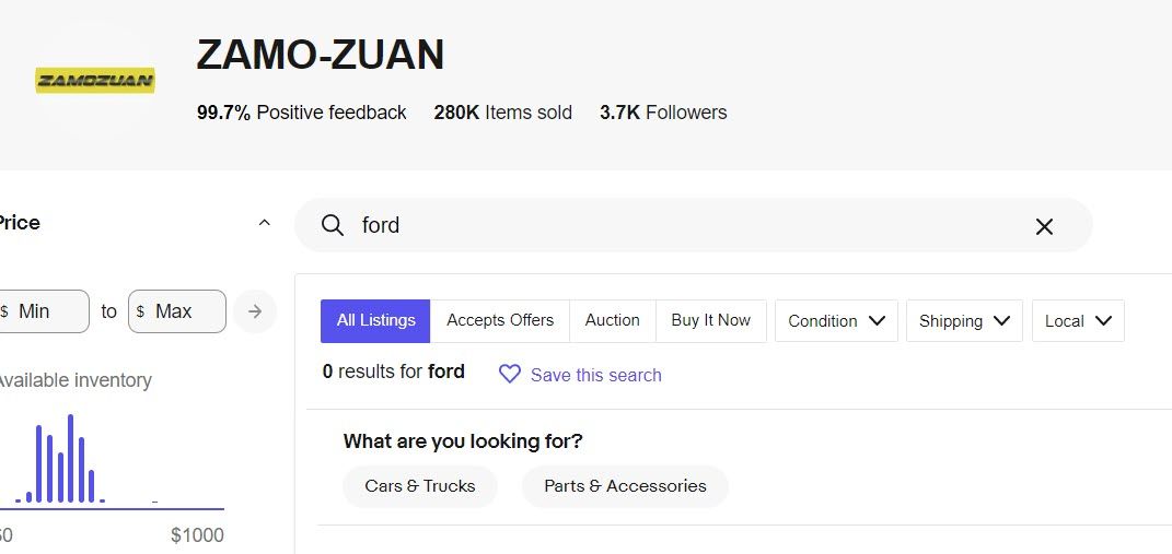 It appears to be impacting the Stores search bar as well - this auto parts seller who definitely has items with the word Ford in the title is showing 0 results if you search from the store page.