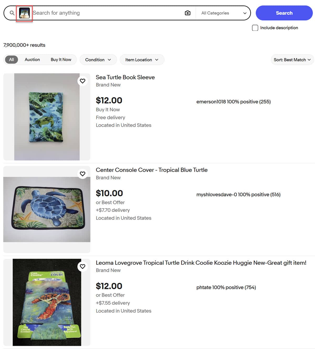I tested it out using three items I had also used in previous testing of search by image in the app and AI Magical Listing - a sea turtle themed mouse pad with wrist rest, a Starbucks mug, and a statue of a mom and baby manatee.