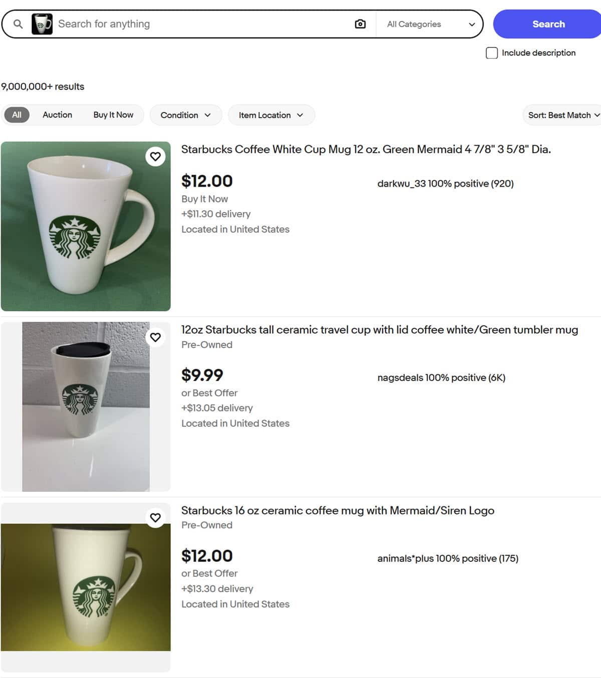 The Starbucks mug similarly followed along with my previous testing - it clearly identified the logo and suggested other mugs with the same logo, but other than that, it was a variety of styles and sizes with many not having a lid like my original picture.