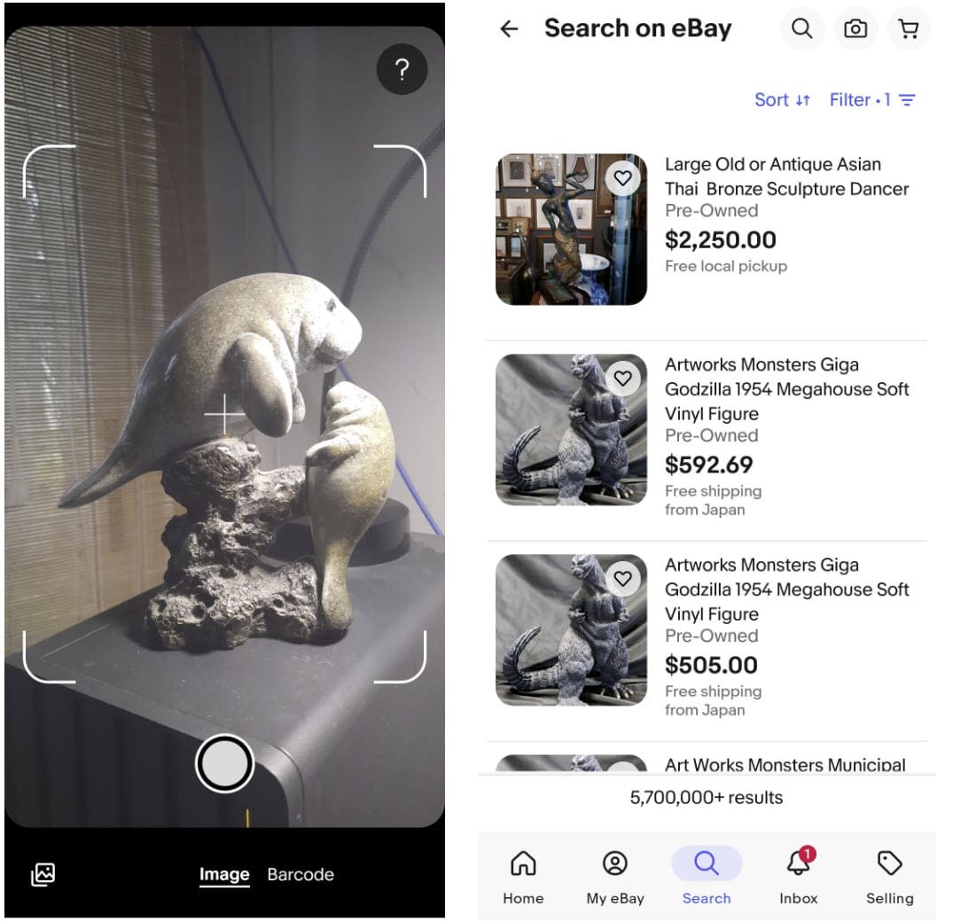 That's a marked improvement from previous testing in which eBay's image search in app thought the same statue was Godzilla.