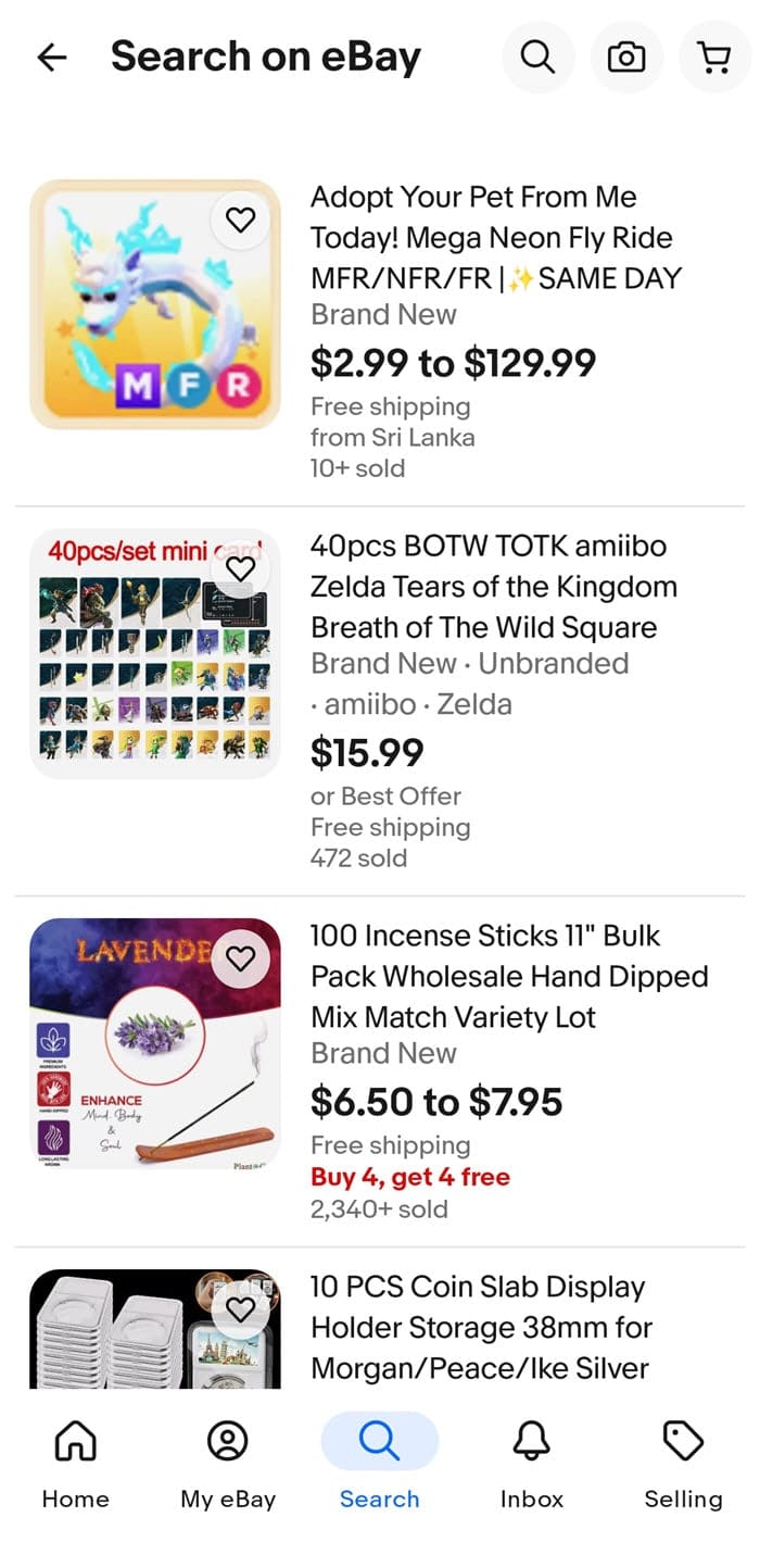 eBay app users report the Search By Image feature appears to be malfunctioning, returning wildly varied and irrelevant results that do not in any way match the items being searched for.