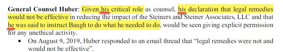 Q. And you mention General Counsel Huber. Who is General Counsel Huber?
