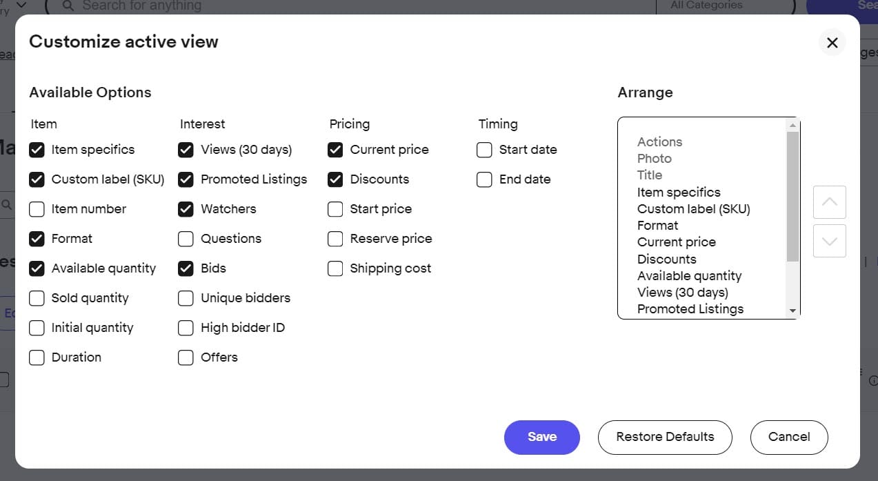 Sellers can still use the Customize Table option to select which columns are displayed (including watchers) and then click those columns to sort by those variables, but that may still leave them having to scroll through a list of items rather than filtering down to show just the items they wish to see.