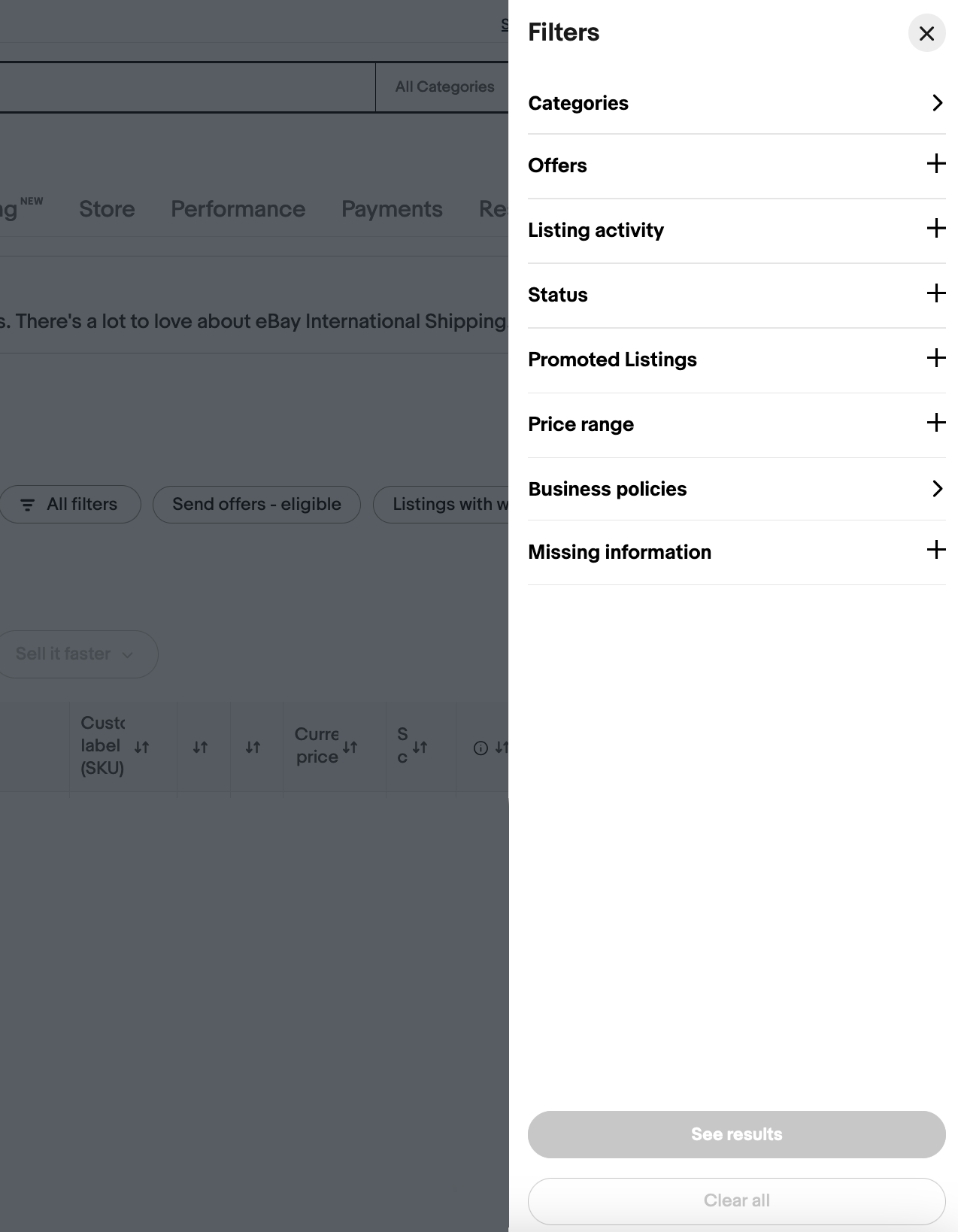 eBay Seller Hub Active Listings Page UI Update Consolidates Search & Filters
