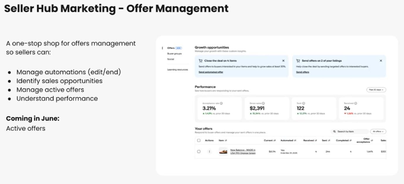 He also said this management page is just the beginning, eBay will soon be rolling out analytics and reporting capability for Offers to give sellers more actionable insights.