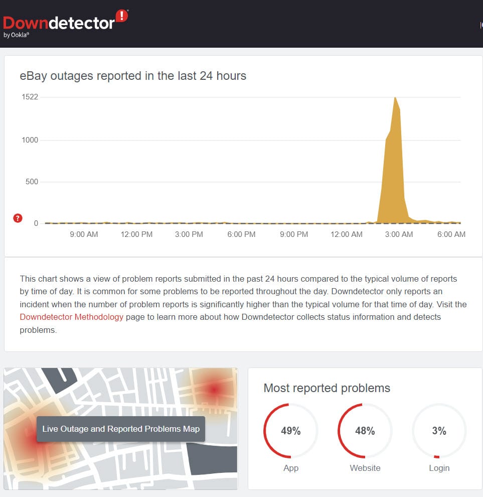 Reports were pouring in with DownDetector for both the eBay US and eBayUK sites lighting up about issues with the app and website.